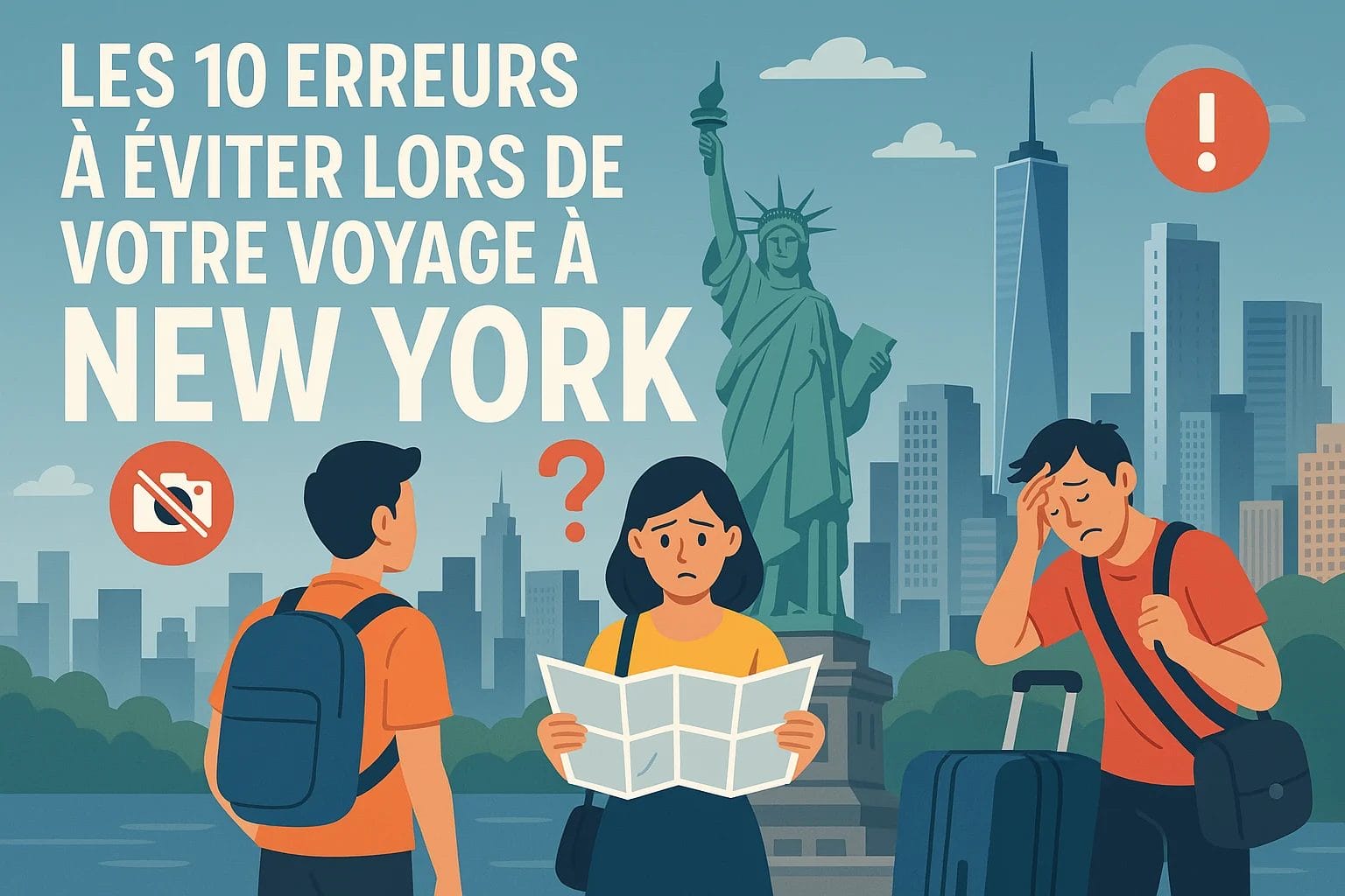 Nueva York es un destino de ensueño para muchos, pero una estancia en la Gran Manzana puede convertirse rápidamente en un quebradero de cabeza sin una mínima preparación. ¿Cuáles son las trampas que debe evitar un turista novato en Nueva York? Desde la introducción, encontrarás la respuesta: hemos enumerado los 10 errores de viaje a Nueva York más frecuentes y cómo evitarlos. Siguiendo nuestros consejos de viaje a Nueva York, sabrás qué no hacer en Nueva York para disfrutar plenamente de tu estancia. En el programa: trámites administrativos indispensables, presupuesto a prever, transportes inteligentes, consejos útiles y preparación del viaje a Nueva York sin estrés. Desde la planificación inicial hasta las costumbres locales a respetar, aquí están las trampas a evitar en Nueva York y nuestros trucos para un viaje exitoso.