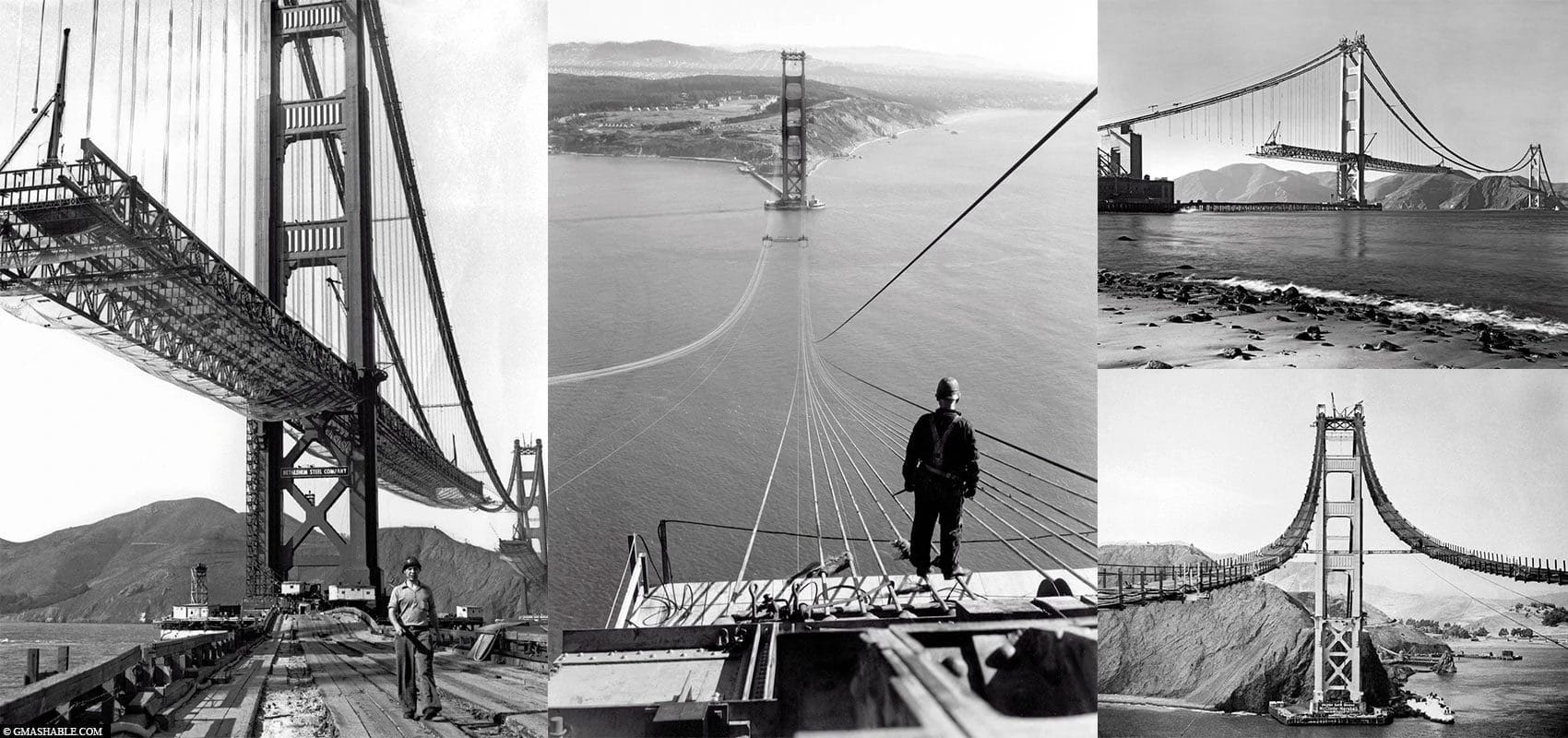 La obra del Golden Gate Bridge comenzó el 5 de enero de 1933 y terminó el 27 de mayo de 1937. Por un coste de 35 millones de dólares, por debajo del presupuesto inicial. Más de 10 000 personas contribuyeron a esta empresa, superando desafíos técnicos y adaptándose a los caprichos de la meteorología. La construcción se hizo por secciones, avanzando simultáneamente desde los dos extremos hacia el centro.