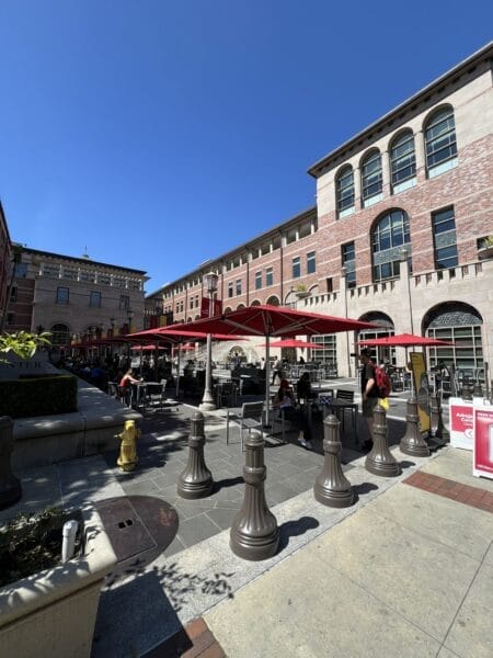 C’est le cœur du campus d’USC avec notamment le Ronald Tutor Campus Center et le Student Union Building. Beaucoup de choses se passent ici en intérieur et en extérieur : bureaux, espaces de travail, de réunions et rassemblements, mais aussi de quoi se restaurer et des salles de spectacle.